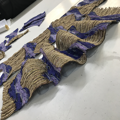 If I were asked to make the hanging again, I think I would pay greater attention to the back of the work, so that it could be hung/displayed in a more central location and be viewed from all directions.
